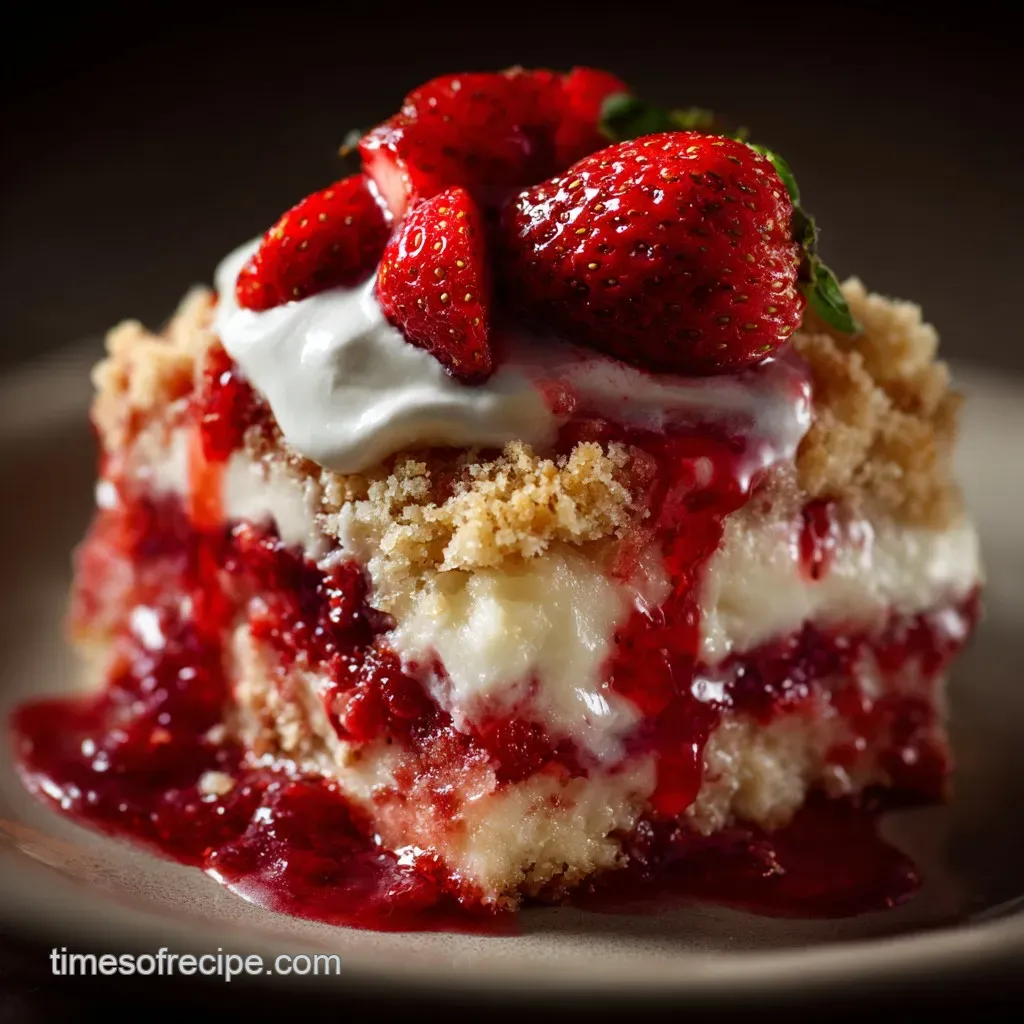I prefer using a Golden or Yellow cake mix because the slightly richer, buttery flavor complements the cream cheese better than pure white. However, a strawberry cake mix works brilliantly if you want to intensify the berry flavor!